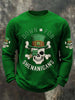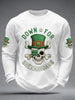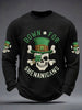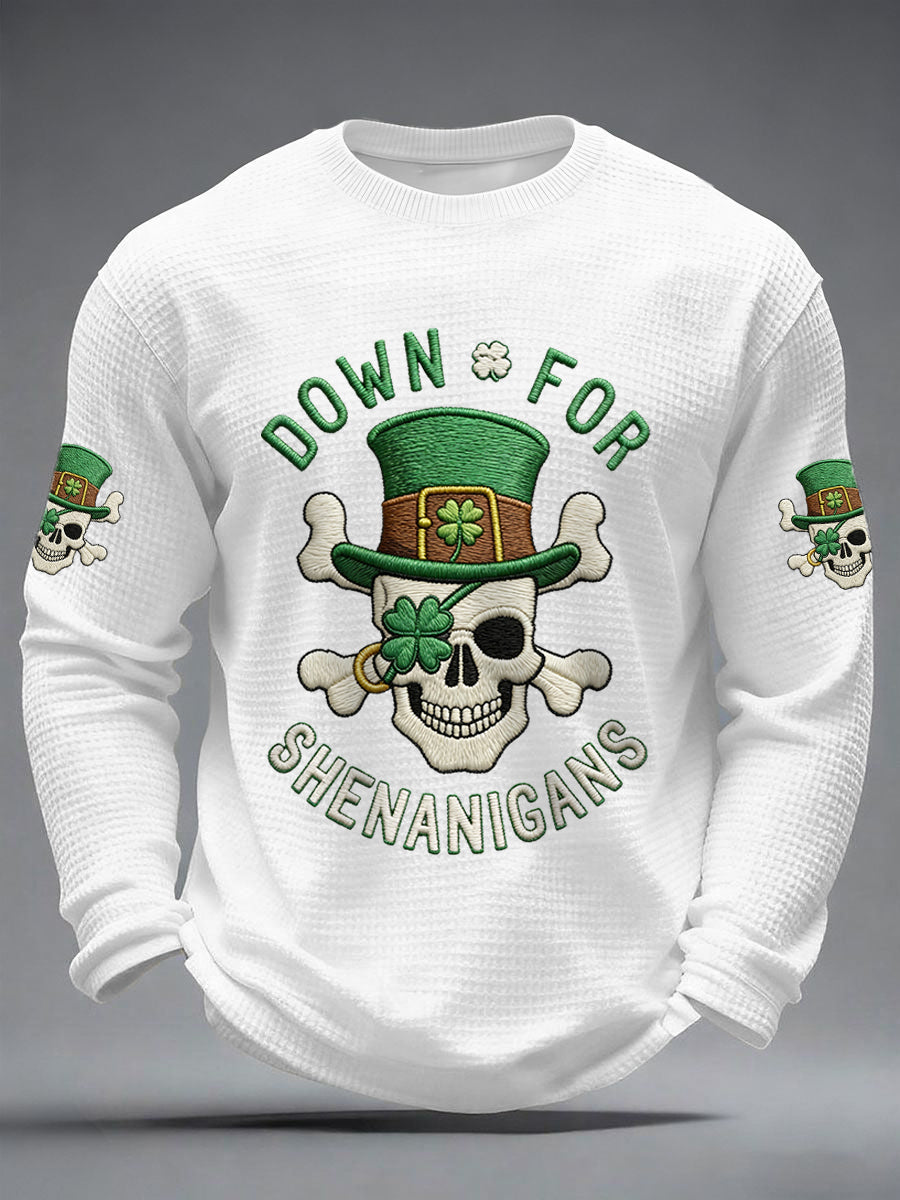 Men's St Patrick's Day Down For Shenanigans Skull Shamrock Print Casual Waffle Long Sleeve T-Shirt
