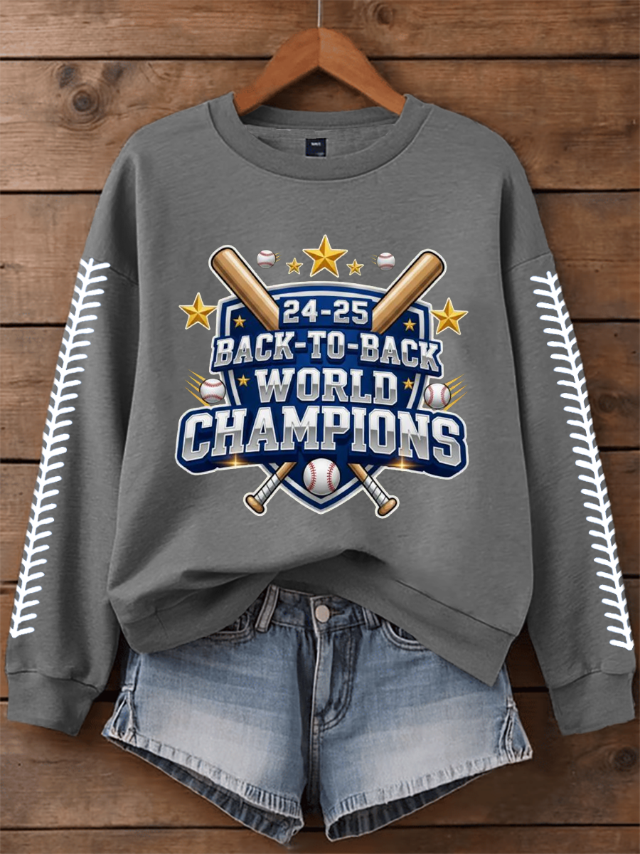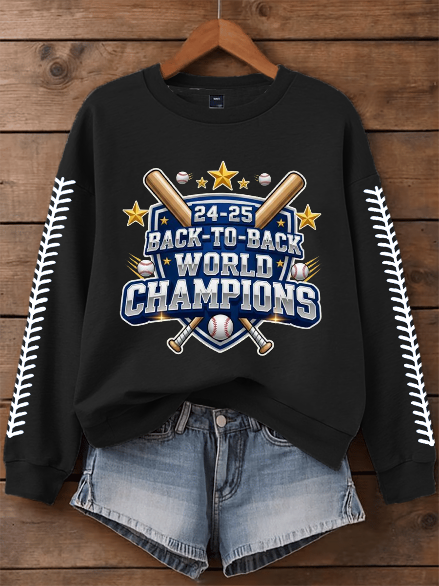 Women's Back To Back World Champions Baseball Print Regular Sweatshirt