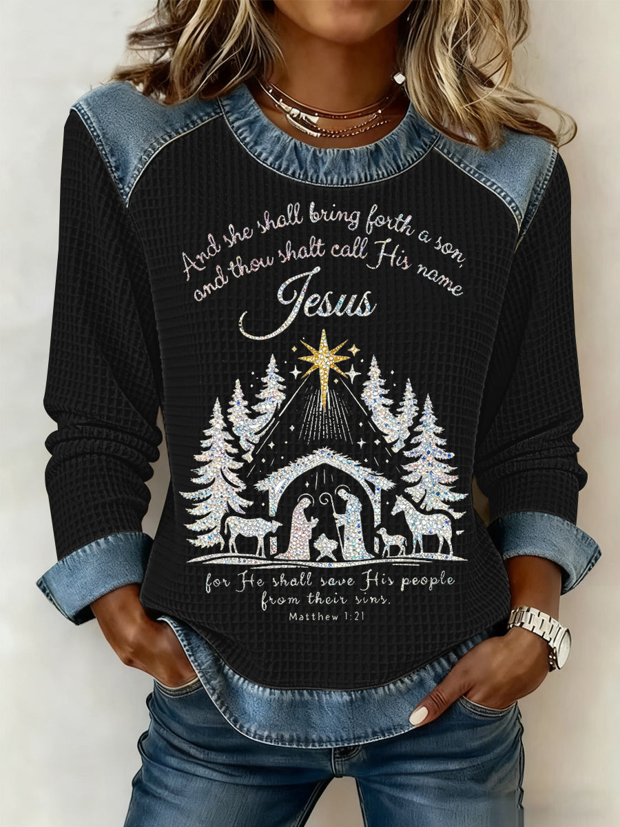 Women's Christmas Print Waffle Sweatshirt