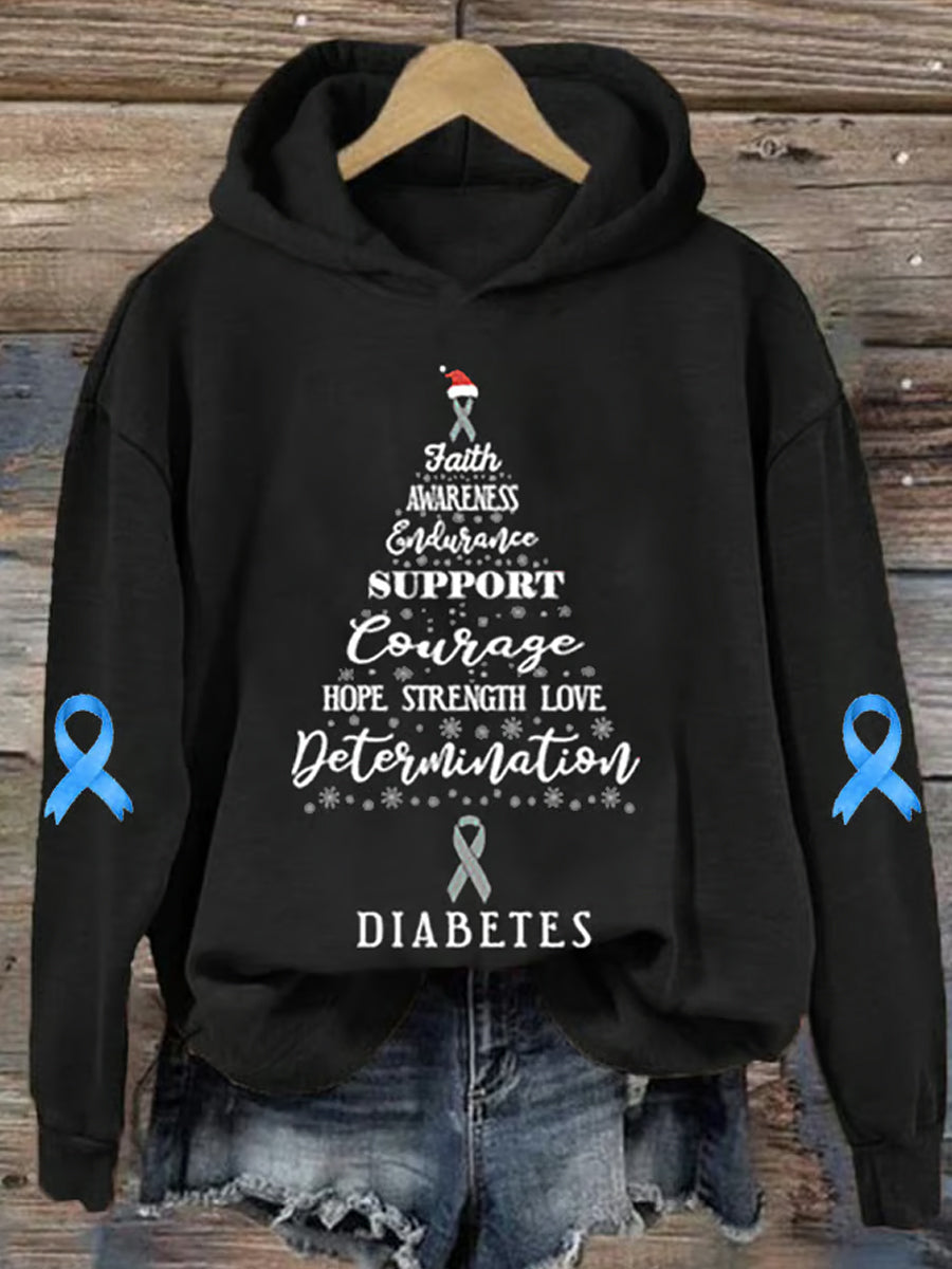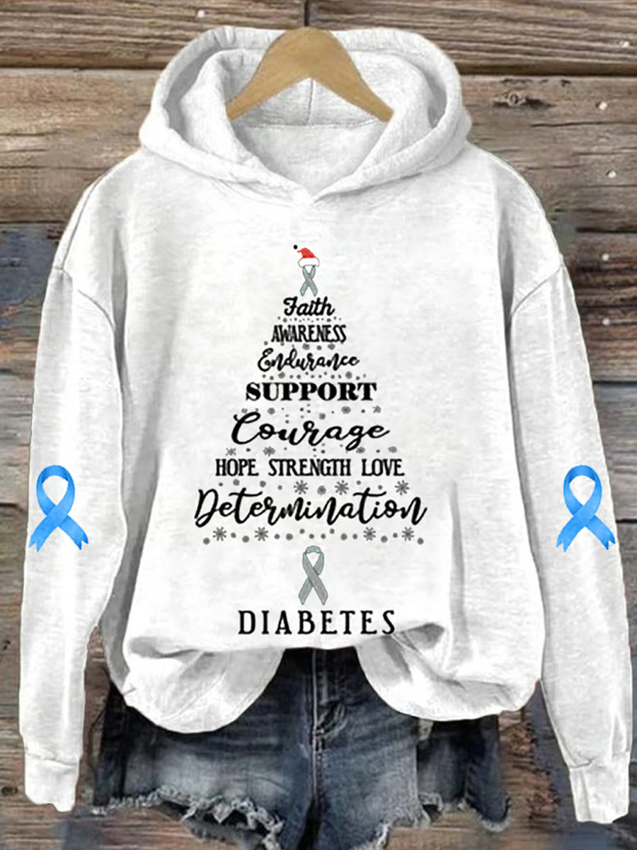 Women's Diabetes Awareness Christmas Hope Print Hoodie Long Sleeve Sweatshirt