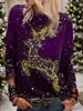 Women'S Glittery Golden & Reindeer Print Long Sleeve T-Shirt