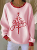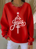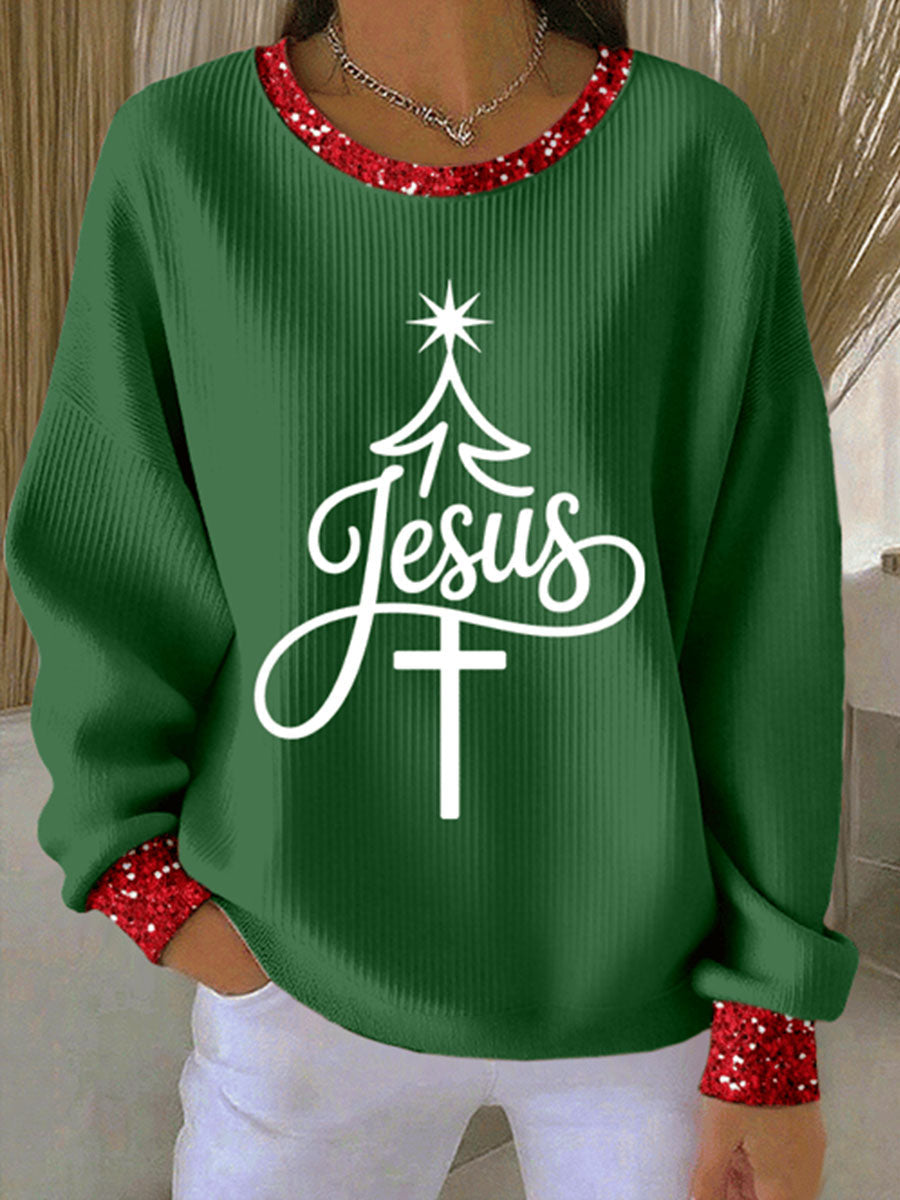 Women's Jesus Christmas Tree Ribbed Round-Neck Sweatshirt