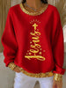 Women's Jesus Faith Cross Art Ribbed Round-Neck Sweatshirt