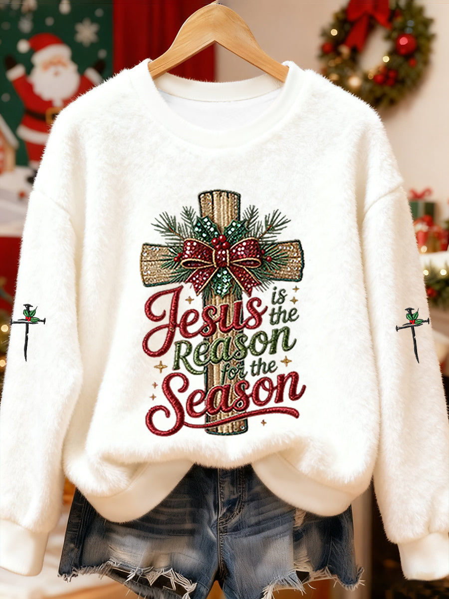 Women's Jesus Is The Reason For The Season Cross Flannel Hoodie