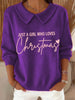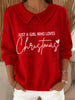 Women's Just a Girl Who Loves Christmas Embroidered Cozy Knit Top