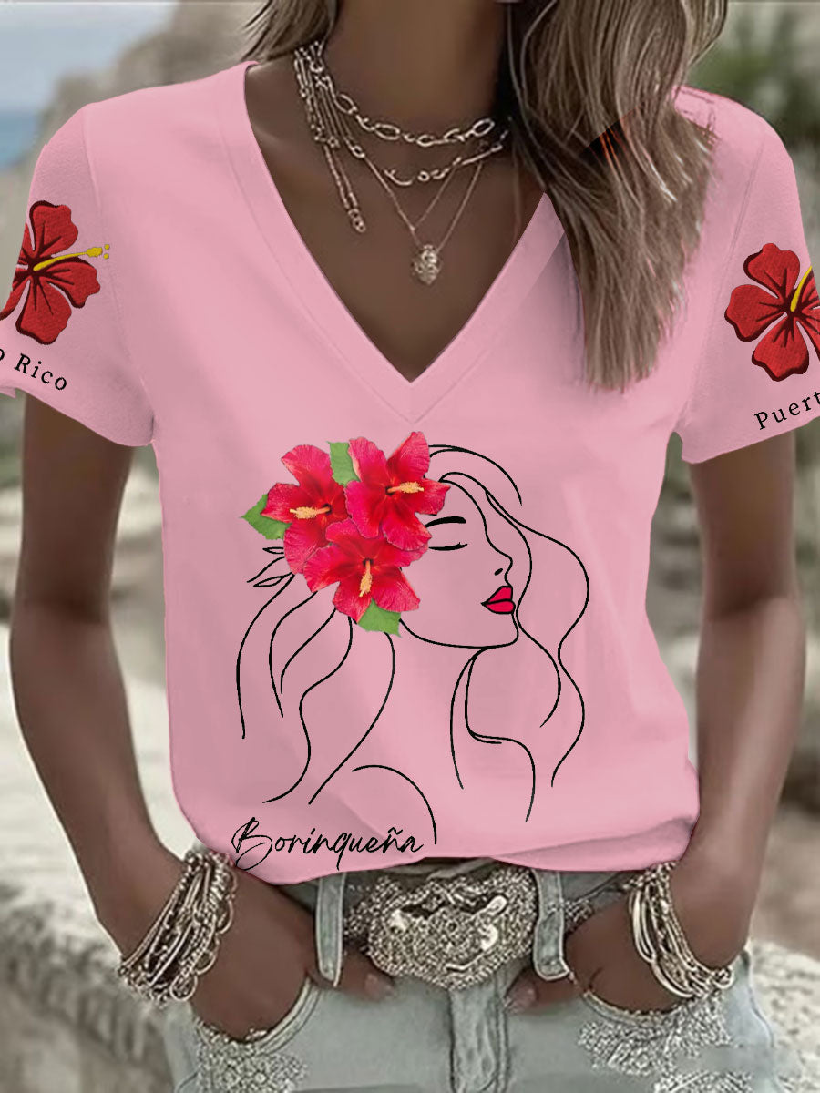 Women's Puerto Rico Flag Flower Art Printed T-shirt