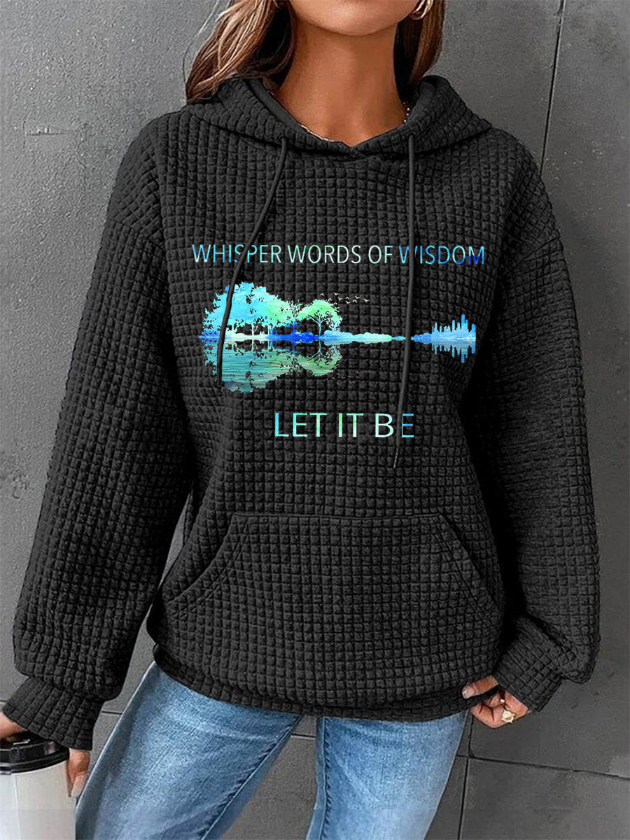 Women's Retro Whisper Words Of Wisdom Let It Be Guitar Print Casual Waffle Hoodie