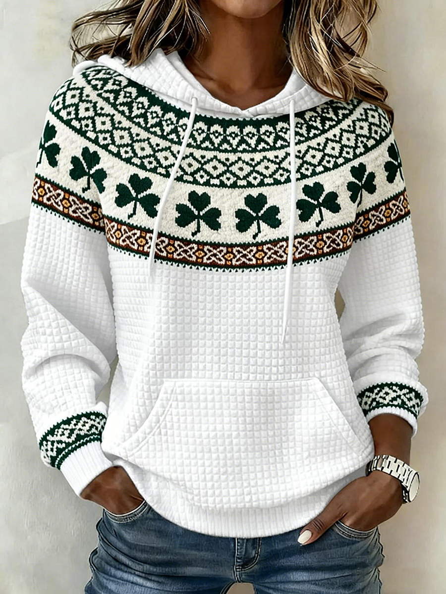 Women's St. Patrick's Day Shamrock Print Large-sized Hooded Sweatshirt
