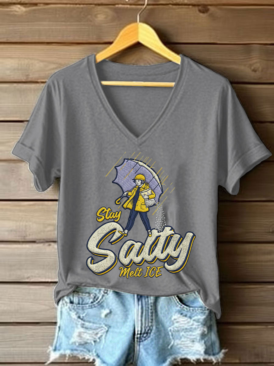 Women's Stay Salty Melt ICE Printed Casual T-Shirt