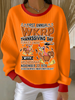 Women's Thanksgiving Print Ribbed Round-Neck Sweatshirt