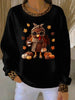 Women's Thanksgiving Print Ribbed Round-Neck Sweatshirt