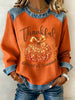 Women's Thanksgiving Pumpkin Thankful Grateful Blessed Printed Denim Patchwork Waffle Top
